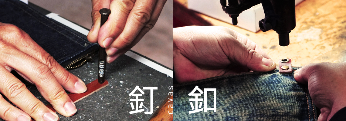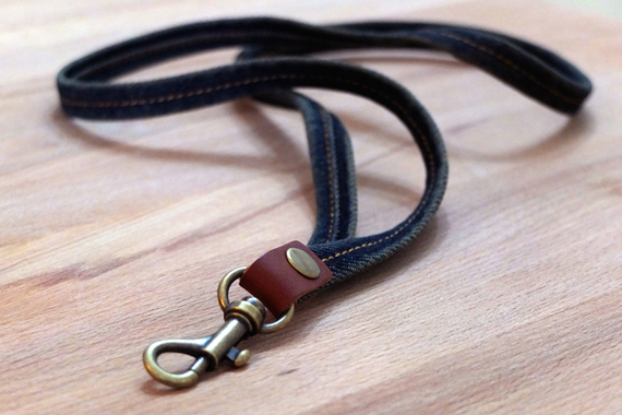 吊繩/手繩 藍色丹寧布水洗後復古套色(金黃色車線)、真牛皮、復古銅釦