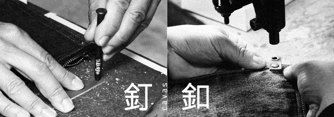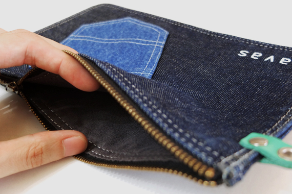 外層藍色丹寧布水洗原色、口袋淺色漂白、深灰色內襯、白色車縫線
