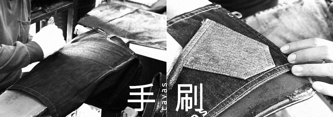 正面 : 丹寧布套色水洗(口袋淺色漂白)
